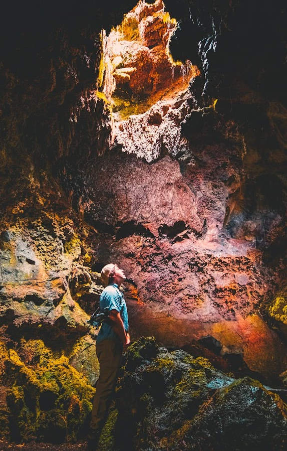 The lava tube we visit is perfect for the casual adventurer. We’ll descend via earthen steps with a rope to assist and there’s enough ambient light to see all of the major features inside the cave.