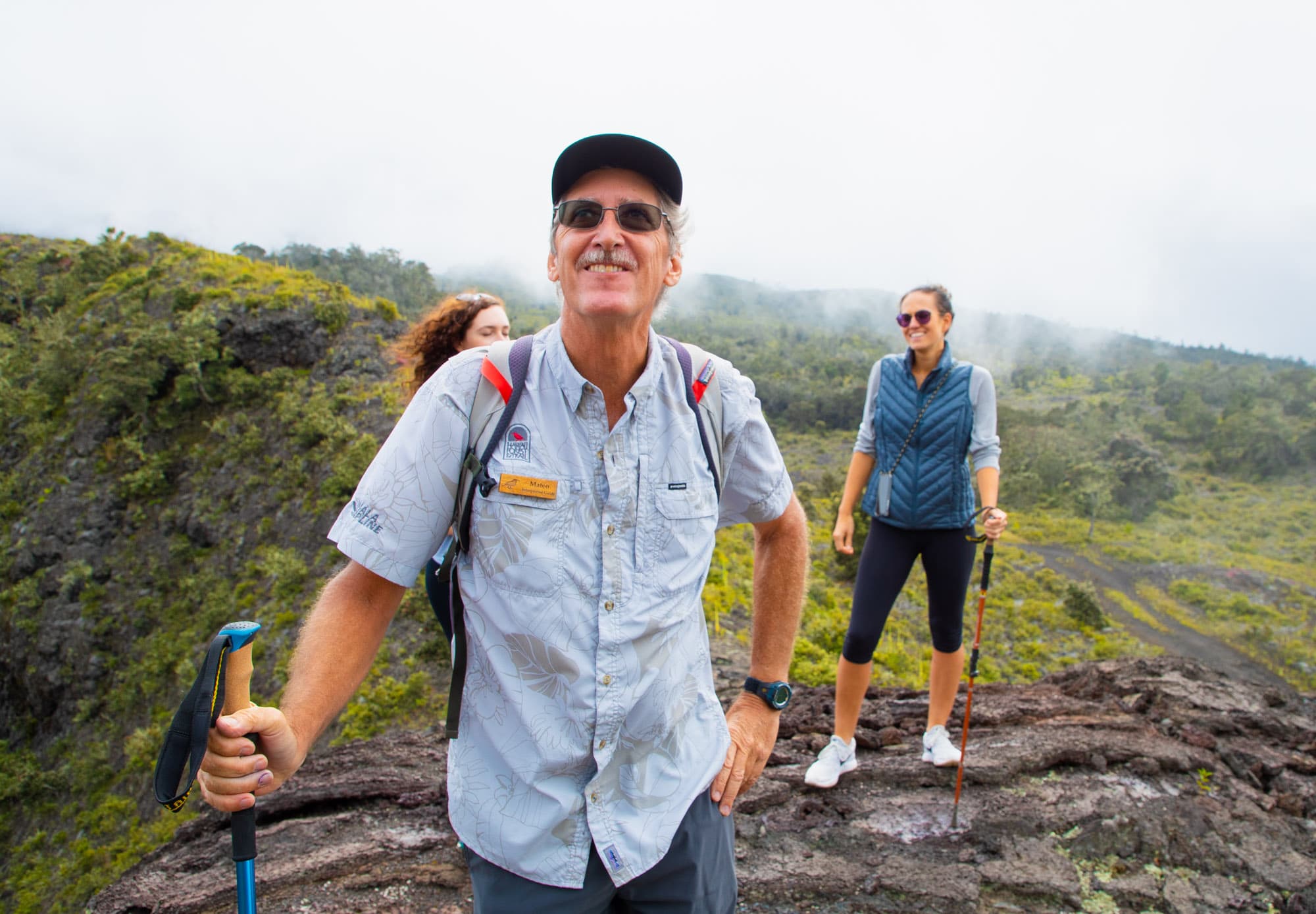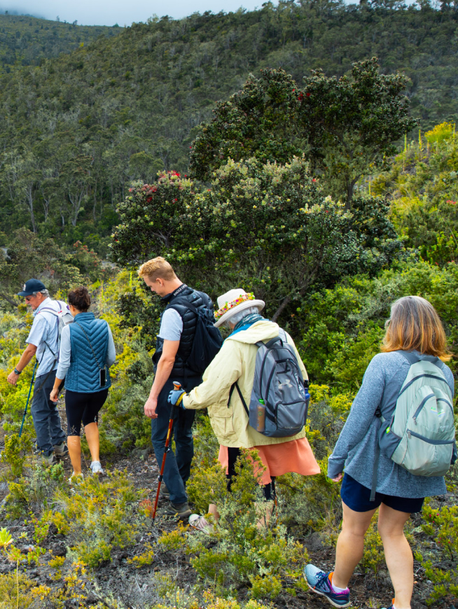 Our tour ranges from sea level to 6,000 feet. We will meander on a single-track trail through native forest with an elevation change of approximately 800 to 1,000 feet. While exploring the lava tube, expect to descend and ascend approximately 30-40 feet.