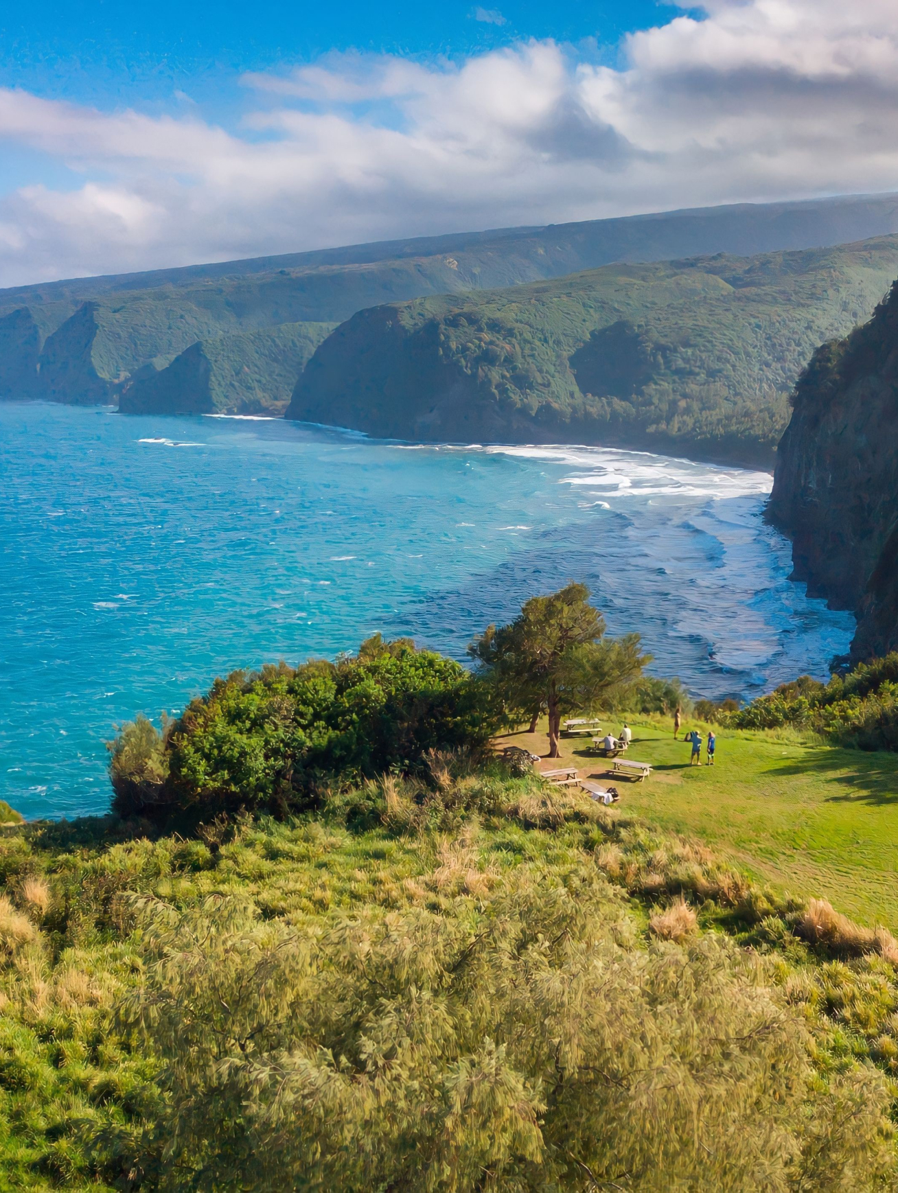 Take a scenic drive through the lush Kohala region, passing through charming plantation towns like Hawi and Kapa’au, home to the iconic King Kamehameha Statue. Then, go off-road to an exclusive one-mile trail along a private stream, where you’ll find cascading waterfalls and refreshing pools perfect for swimming. To cap off your day, enjoy a picnic lunch at our secluded overlook with breathtaking views of Kohala’s famous valleys and sea cliffs.